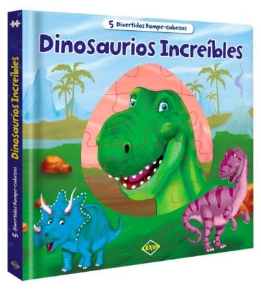 Conoce los increíbles dinosaurios de este libro con divertidos 5 rompecabezas. ¡Tiranosaurio rex, Tricerátopo y Alosaurio son algunos de los gigantes que te esperan para un viaje por el mundo pre-histórico.