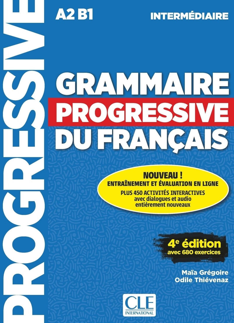 Quatrième édition de l'ouvrage de Grammaire de français langue étrangère FLE , niveau intermédiaire, dans la collection Progressive du français destiné aux grands adolescents et adultes.